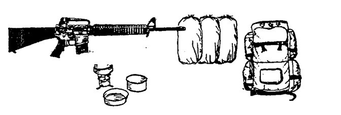 1 angle-head GI flashlight (black or -00) 1 ALICE LC-2 (or LC-1) rucksack frame