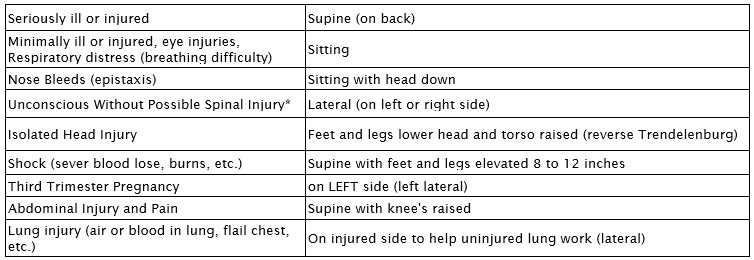 In many situations how a patient is positioned can affect his or her condition and survival. In most cases the patients chosen position (position of comfort) will be the best.