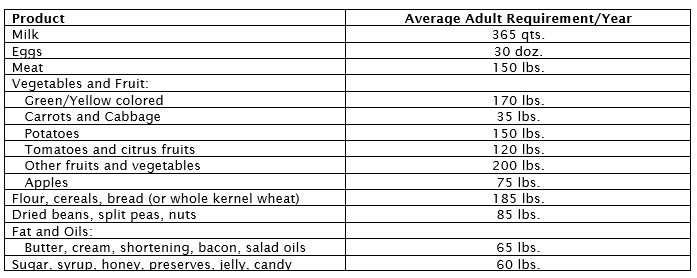 * If circumstances cause wheat to become the principal diet, the amount required per individual is somewhat greater.