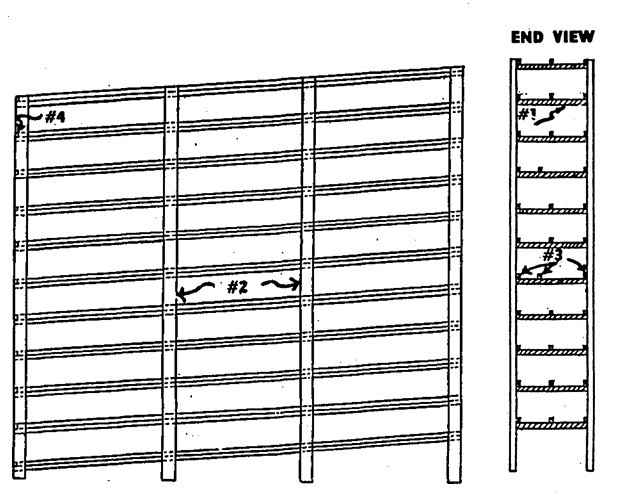 1. This is a slanting-shelf plan to allow cans to roll to the low end of the shelf. Replacement purchases will be put in at the high end of the shelf, thus allowing the oldest stock to be removed from the low end.