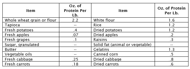 Three suggested plans are given below for your guidance. The plans can be used as given or altered to suit your needs and storage conditions. If you alter these plans, it would be wise to refer to the Nutritional Table in Section X to make sure that you maintain the essential protein in your diet.