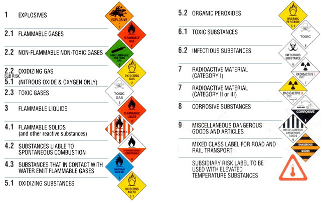 SOME COMMON HAZARDOUS MATERIAL PLACARDS