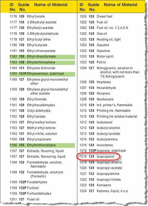Look up the chemical by the name (blue pages) or by the I. D. Number (yellow pages), then go to the recommended Guide Number (orange pages) to find out what to do.