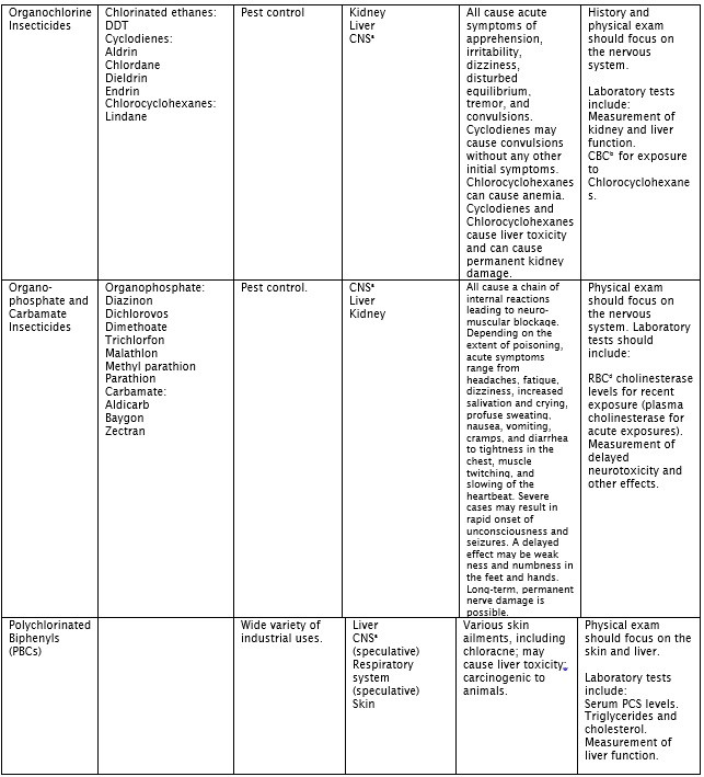 Effects (signs and symptoms of exposure): Chemical warfare agents are categorized into seven groups and although commercial agents are not categorized this way, there symptoms will follow the same patterns. The symptoms of exposure to commercial chemicals will be available in Material Safety Data Sheets that are kept at storage sites or in the vehicles that transport them. Industrial label requirements will show Health, Flammability and Reactivity rated from 0 to 4. 0 indicating no hazard 123 and for increasing levels of hazard.