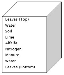 This can be done on a wide row. On top of the soil which has been tilled. ADD: 1) Leaves 3 to 5 inches 2) One gallon of ashes per 100 square feet. Ashes sweeten the soil- east of the Mississippi River only. 3) Per 100 square feet add one quart of 10-10-10 organic fertilizer. 4) Lightly lime. 5) Cover this with some soil, ½ to 1 inch. 6) Water enough to soak. 7) Let set 10 days to 2 weeks and till into the ground. This process releases nutrients back into the soil, holds moisture, stops erosion, and acts as a blanket to protect the soil.