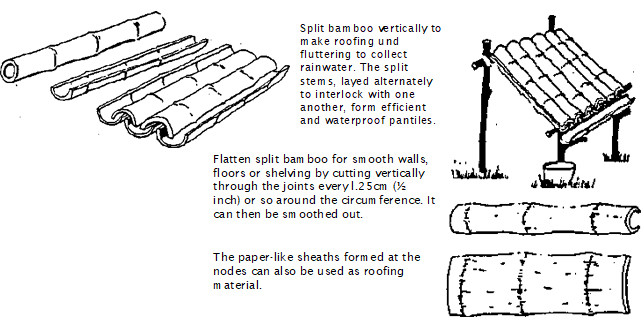 This large-stemmed plant, actually a grass, is a very versatile building material and can be used for pole supports, flooring, roofing and walls. The giant form of bamboo, which can be over 30m (100ft) high and 30cm (1ft) in diameter, is an Asian plant, found in damp places from India through to China both in the lowlands and on mountain slopes, but there are types native to Africa and Australia and two which are found in the southern United States.