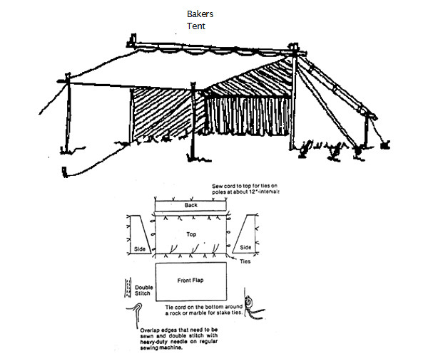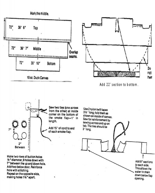 Note the shelter using a double layer of material to improve insulation. The same technique may be used in cold weather.