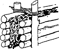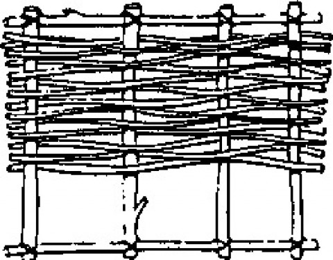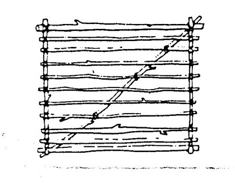 If no ties are available, drive vertical stakes into the ground and weave saplings between them. Caulk with earth and grasses. If suitable firm cross pieces are too few, weave creepers between the uprights.